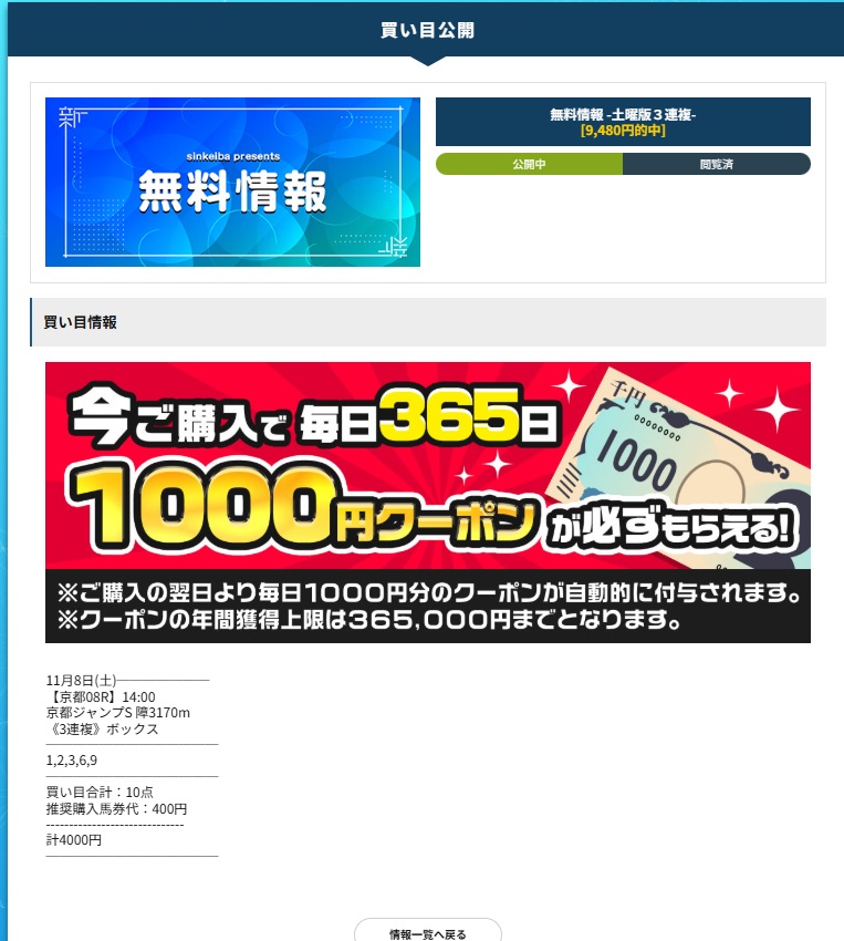 シンケイバの無料予想はこちら
